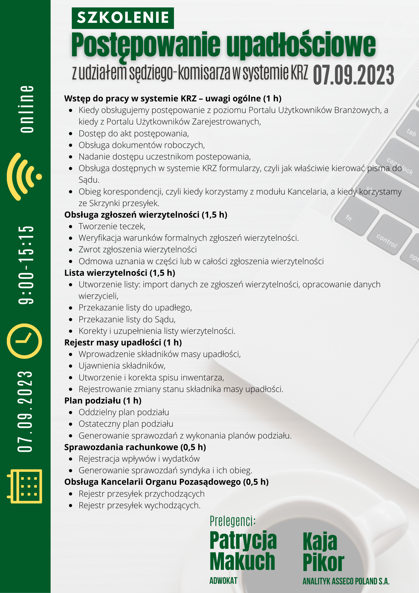 Szkolenie odbędzie się 07.09.2023 r., godz. 9:00-15:15
