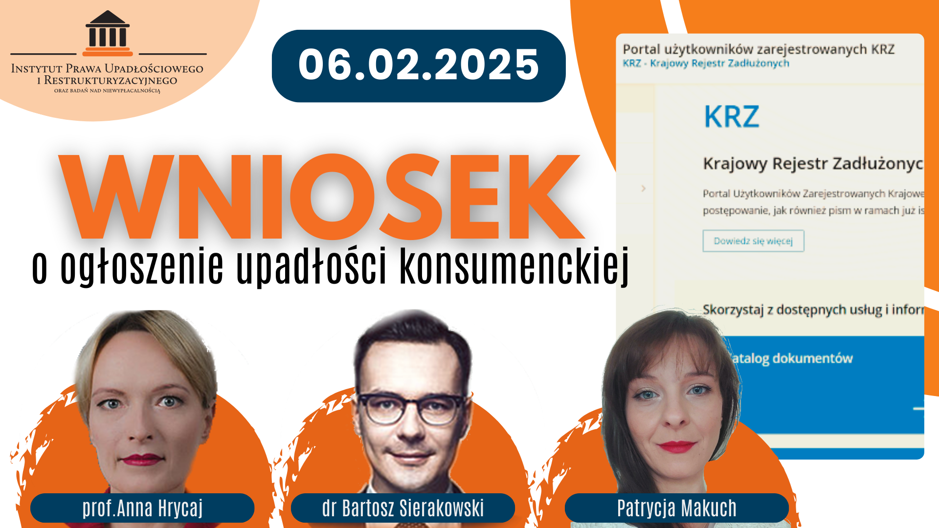 Anna Hrycaj, Bartosz Sierakowski oraz Patrycja Makuch przedstawią do jakiego sądu składać wniosek, jak wypełnić elektroniczny formularz w systemie KRZ, jak uzasadnić żądanie ogłoszenia upadłości, jak sprawnie i szybko uzyskać pozytywne rozpoznanie wniosku.