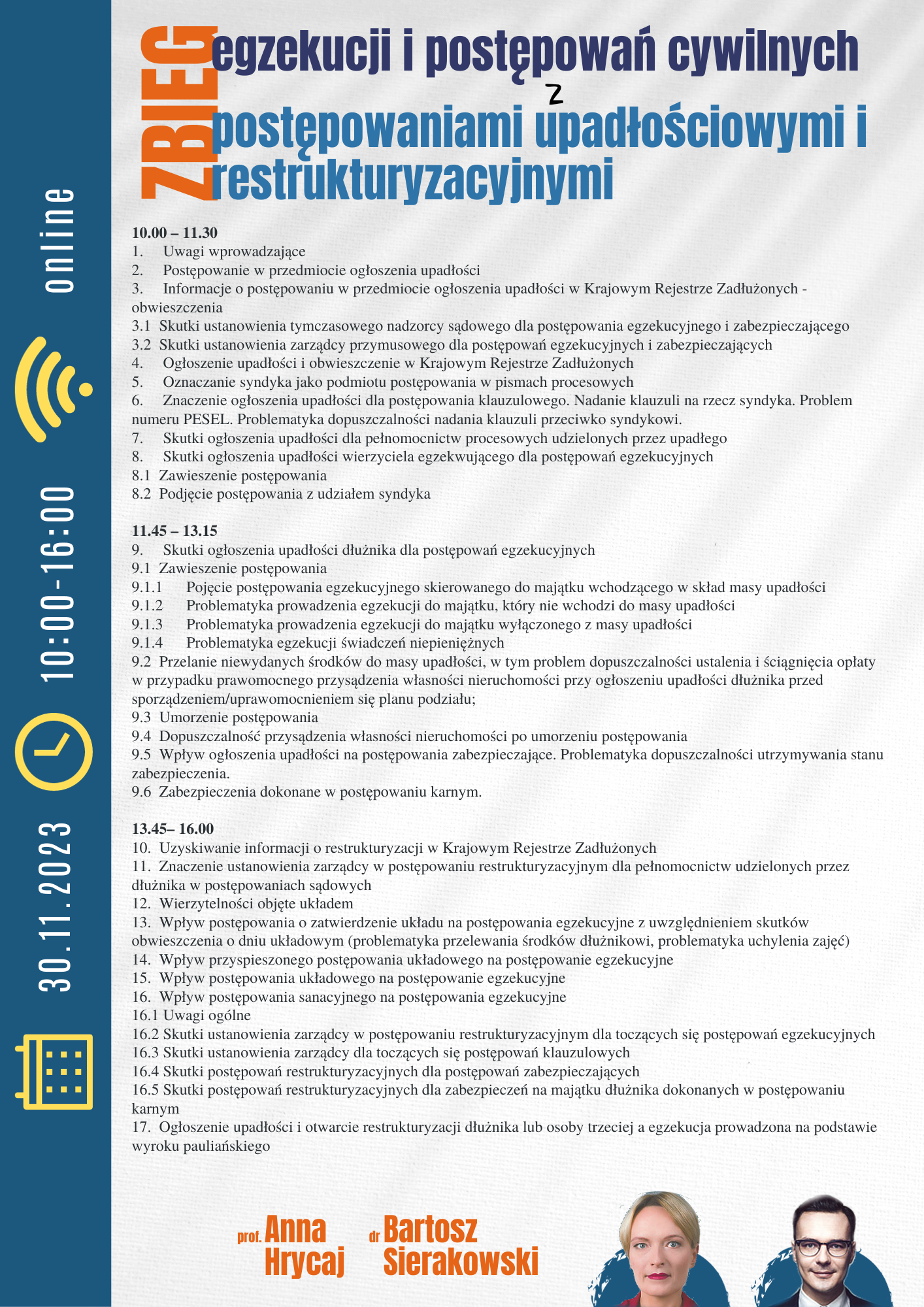 Organizatorzy: Instytut Prawa Upadłościowego, Restrukturyzacyjnego oraz Badań nad Niewypłacalnością