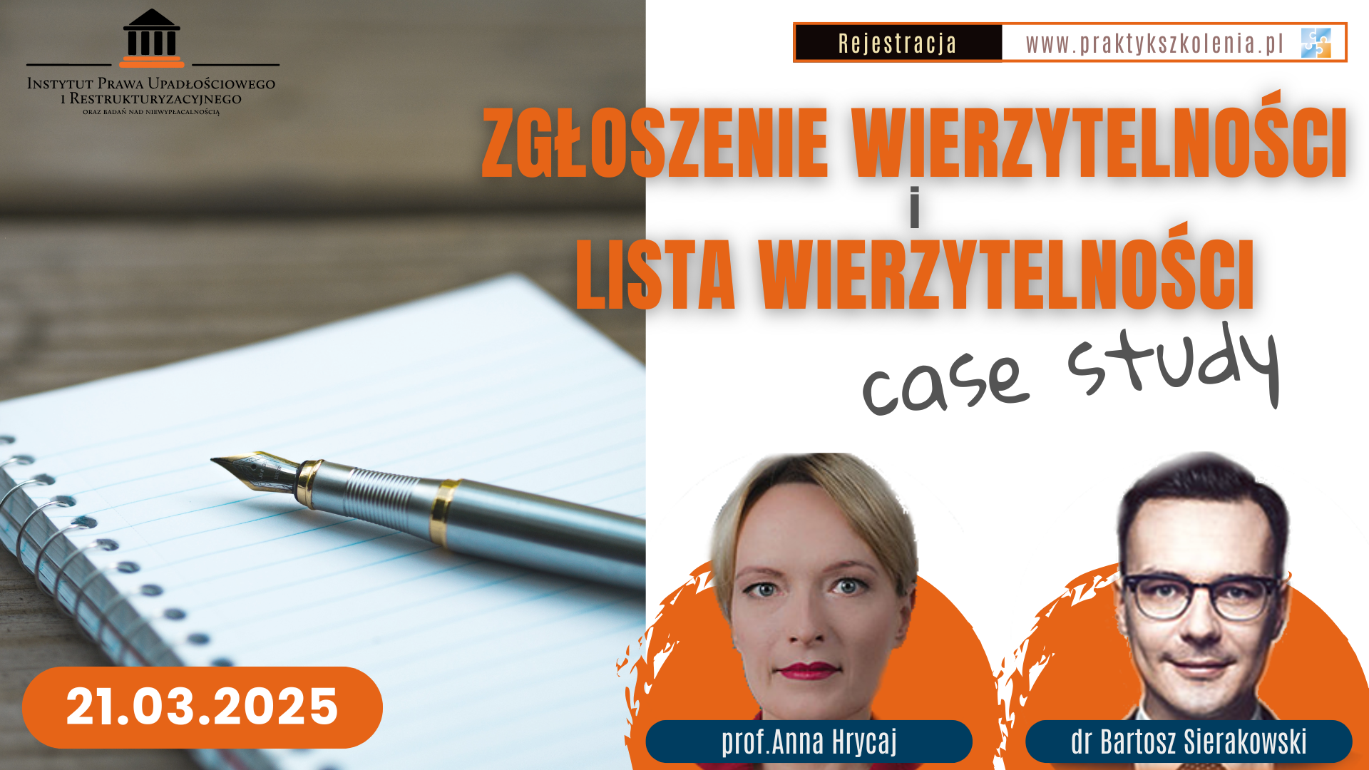 Organizatorzy: Instytut Prawa Upadłościowego, Restrukturyzacyjnego oraz Badań nad Niewypłacalnością; praktykszkolenia.pl