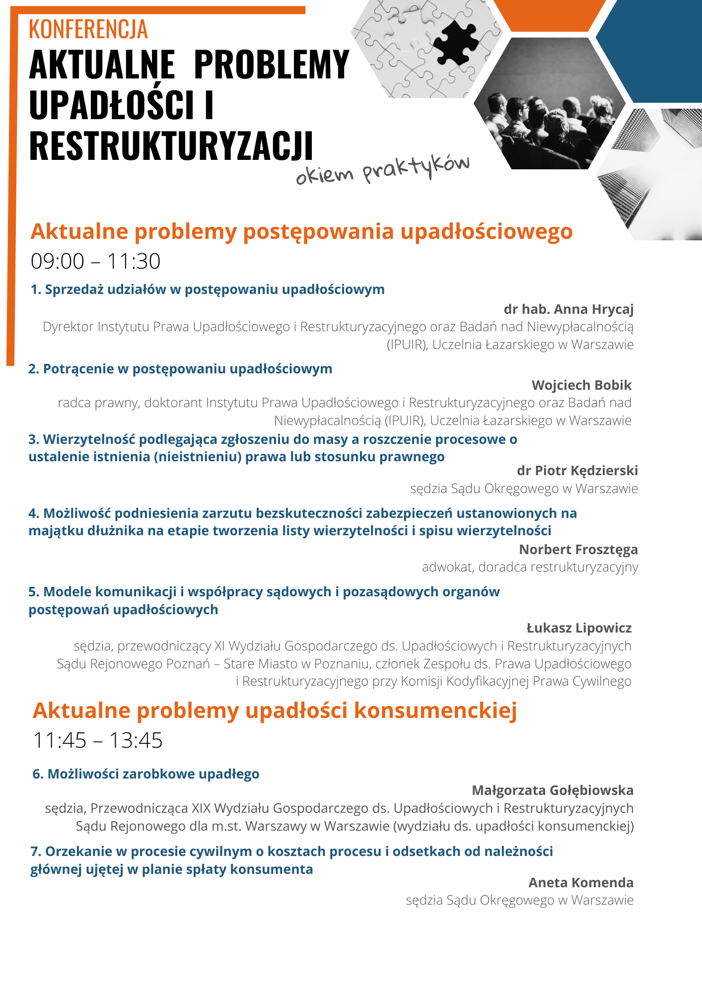 Organizatorzy: Instytut Prawa Upadłościowego, Restrukturyzacyjnego oraz Badań nad Niewypłacalnością